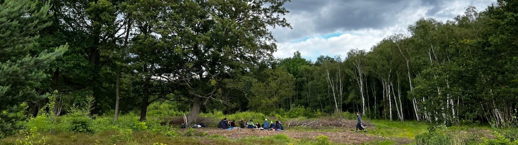 Much of the rest of our time this year we spent planning, organising, delivering and reflecting on what we called the Nature-centred Wellbeing Programme – a 10-week series of in-person and online sessions with staff members of Richmond and Wandsworth Councils in London. This project grew out of our residency last year at Orleans House Gallery where the Richmond Arts Service are curating the Cultural Reforesting programme. 18 staff members from across the two councils spent time together and individually reflecting on and developing their own relationship to nature. The hybrid programme took us to green spaces in both boroughs including Orleans House Gallery’s beautiful grounds and the incredible Putney Heath. In developing this programme we wanted to consider the link between nature and wellbeing and whether they are in fact separate. We learned a huge amount from the whole experience including the real tension between the pressures of work culture and what we discover when we spend intentional time outside.