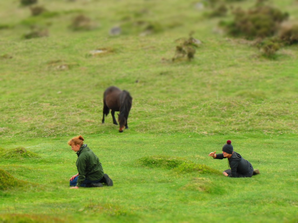 … what remains .. an umbilical cord to the group … of us and the wider grouping of land and all things living in it, the organisation of the days … and it’s softening to meet energetic changes, weather patterns and practice changing, I’m tasting rain and wind and smelling cow and mint and old mossy trees, my body is tired but full of the desire to dance with everyone again … chimp human raven herd lines, I can sense inscriptions more than traces … little grooves in my system and skin that are forming thoughts about my place in all this, I am reaffirmed as a human somehow … but one that begins to understand a more fluid and slow way to meet others of all kinds, I am mindful of my heavy handedness in bringing big tents and big car and a busy schedule that was a less quiet undertow for my own experience … I had to drop it all to climb into the work more fully … tent collapsing was a reminder that impositions rarely offer very much, I’m with gender noticings and the queer nature of this work … it’s atomic way, I’m remembering the generosity of us all and of the places we visited and the other beings we spent time with, I remember too .. rainbows, cold water, hot tea, folk music, plum wine, eating under canvas, eyes closed hill walking running falling